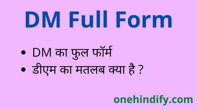 क्या आप डीएम फुल फॉर्म के बारे में जानने के लिए हमारी इस वेबसाइट पर आए हैं, यदि हां तो आज की इस पोस्ट में हम आपको DM शब्द से जुड़ी कई प्रकार की ऐसी जानकारियां देने वाले है जिसे आपको अवश्य पढ़नी चाहिए। इसलिए आप सब लोग हमारा यह लेख पूरा पढ़े।